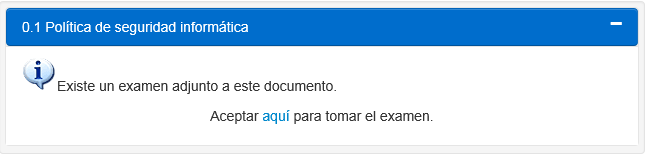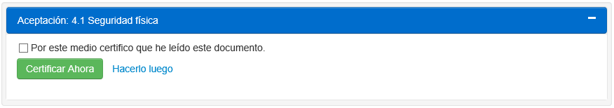 4.Presione Certificar Ahora. El sistema puede retornar a la página principal de “Políticas” o un mensaje se desplegará indicando que hay un examen incluido sobre la política.