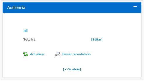 6.Agregue una nueva audiencia seleccionando un grupo de la lista desplegable presionando el botón ”+”. Para borrar un grupo de audiencia seleccione del menú desplegable el botón “-“.