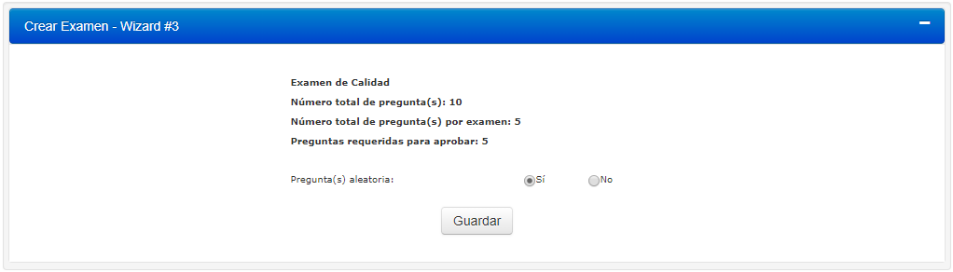9.Haga clic en Si, si quiere que el sistema aleatoriamente asigne las preguntas a cada examen, o presione No, si prefiere asignar preguntas específicas manualmente al examen: