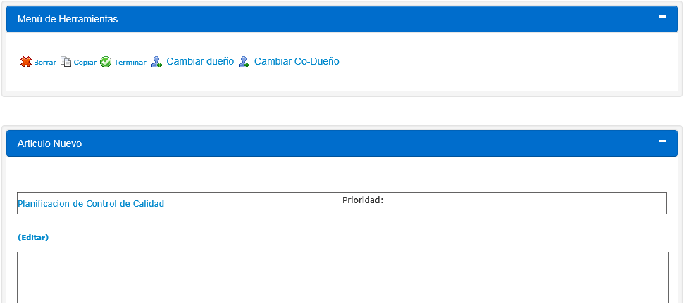 3.La pantalla del nuevo artículo será desplegada: